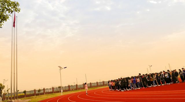 7时45分英姿飒爽的国旗班旗手们着装整齐,迈着矫健的步伐,以饱满的热情庄严地护卫五星红旗进场。随后,伴着雄壮的《义勇军进行曲》,五星红旗冉冉升起,肃然而立的师生们凝神注目缓缓上升的国旗唱起了国歌,洪亮的歌声响彻云霄。