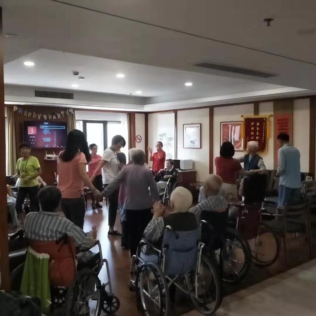 每逢周五都是志愿者来摆放老人的时候,他们带领老人做活动操,热心的与老人交谈,陪老人一起玩游戏。这时老师又提出了一个很重要的点:无论是什么患者都需要一个团体。