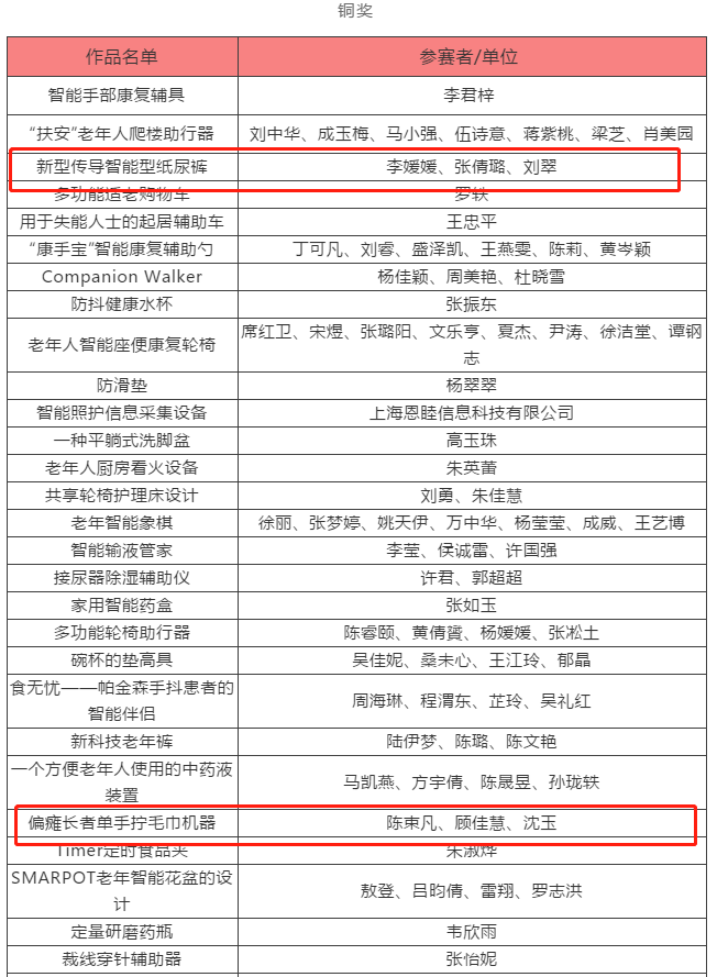 在第八届中国老年福祉产品创意创新创业大赛中,我院陈束凡团队和李媛媛团队的项目获得铜奖。
