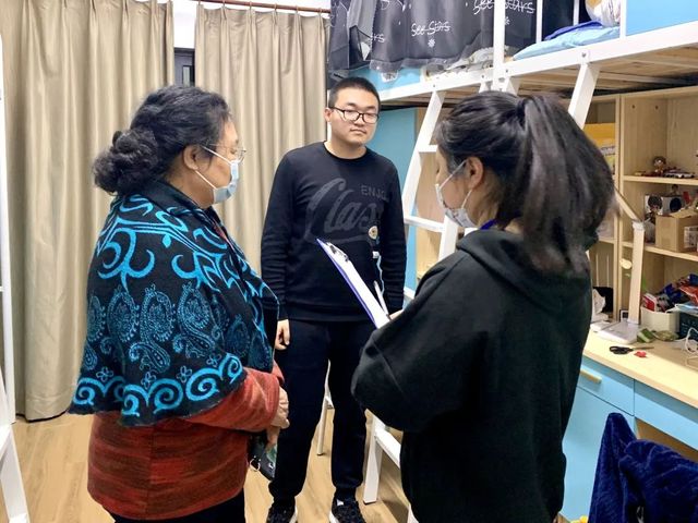在帮扶活动中,陈伟光老师通过走访宿舍的形式关切地询问了学生们近期线上学习、日常生活、身体健康和心理等状况,并向大家普及防疫知识。曹雪楠老师在走访宿舍的过程中针对疫情防控期间校园管理的措施,对学生们做了耐心的疏导,同时希望学生们可以调整作息时间和学习状态,安心生活,努力学习。