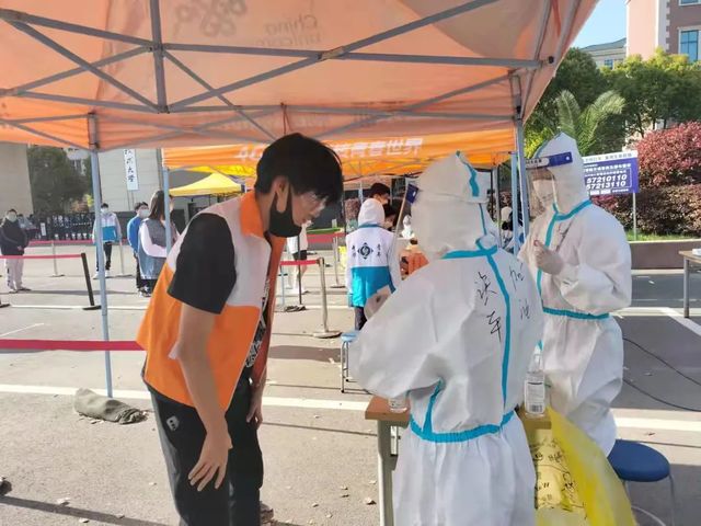 根据国家和上海市疫情防控要求,英国365集团公司对全校师生进行常态化防护性核酸检测工作。为减轻防疫工作的负担,提高核酸检测工作效率,英国上市公司365快速响应,凝聚自主抗疫力量。护理学院的师生志愿服务队冲锋在前,义无反顾地加入到了“大白”行列当中。作为护理专业的师生,他们运用专业技能、满怀真诚和勇气,参与到一线核酸检测的志愿服务工作当中。
