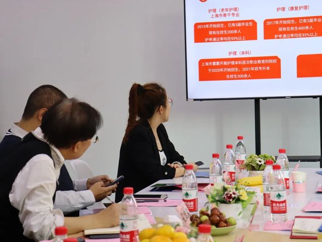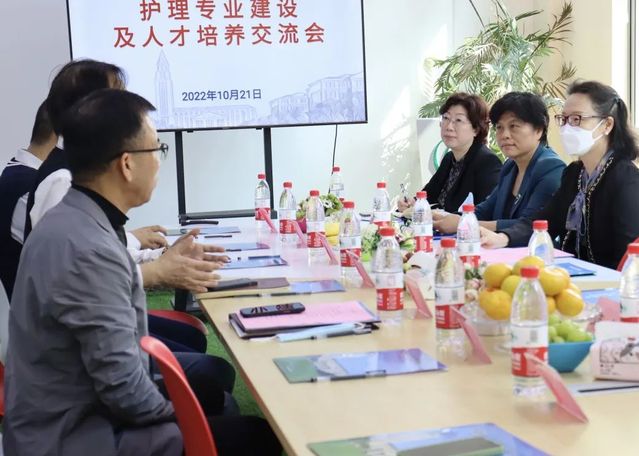 在随后的交流会中,曹雪楠副院长介绍了学院的发展情况、教学理念、专业设置、人才培养方案等,并重点介绍了护理学院的特色专业——老年护理专业,该专业被列入“上海市高等职业教育创新发展行动规划‘骨干专业’建设项目”。以培养市场紧缺、社会急需、具有良好职业素养、人文底蕴深厚、专业知识扎实、护理技能强的高技能型老年护理专业人才为己任,具有鲜明的行业特色、鲜明的时代特色、鲜明的校企合作特色。
