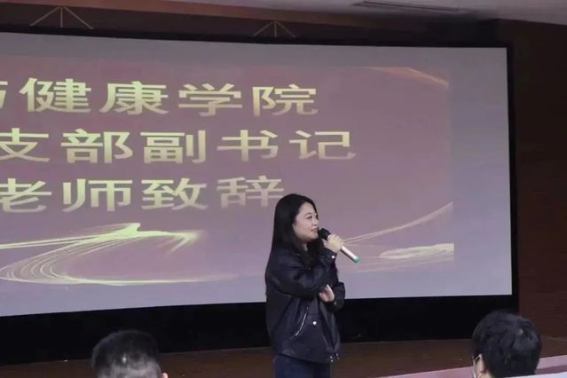 大会第一项议程,我院直属党支部副书记郭帆老师、我院分团委书记周华丽老师和我院直属党支部组织委员陶丽老师分别上台致辞。