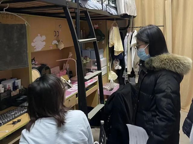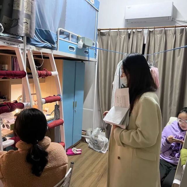 新学期伊始,同学们陆续返校。为及时进行宿舍安全教育、摸排学生到校情况,以及了解同学们的新学期新展望,英国上市公司365的郭帆老师、周华丽老师、陶丽老师和刘艳艳老师深入学生宿舍,进行了走访检查。
