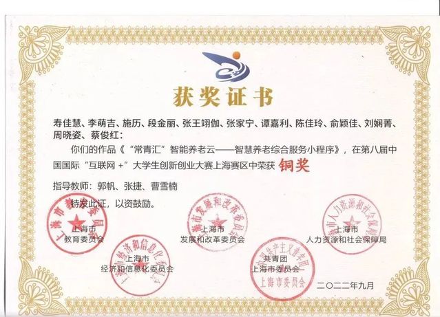 近日,第八届中国国际“互联网+”大学生创新创业大赛总决赛落下帷幕。经过激烈角逐,在“互联网+”上海市市赛中,我院学子斩获大赛7个奖项。其中,铜奖4项,优胜奖3项。