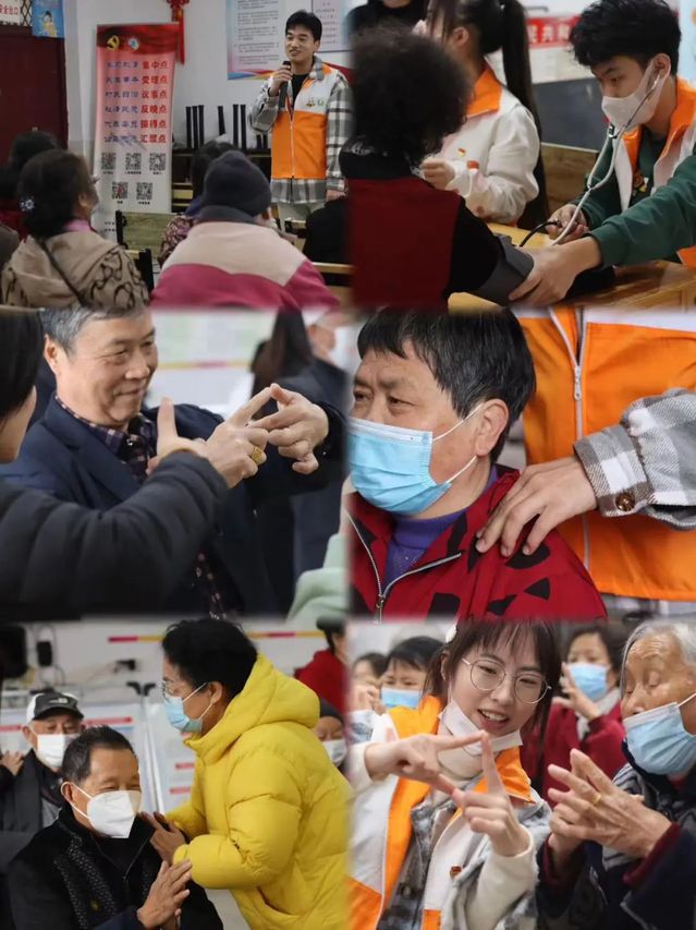 活动现场,志愿者为解放居民区的老人播放宣传视频,用亲切自然的方言向他们科普认知障碍症;随后,带领大家完成“头脑认知症手指操”的一系列动作;并且,运用我院的专业特色由党员教师及全体志愿者为在场老年人进行中医按摩;最后为大家进行血压测量和心率听诊。