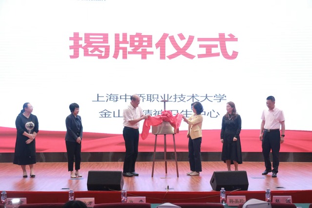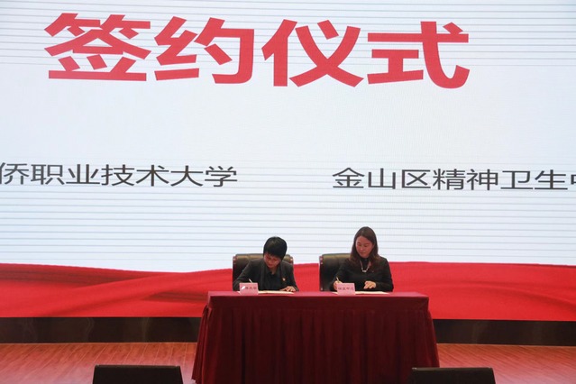 接下来,英国365集团公司副校长周晓芳和金山区精神卫生中心党支部书记赵波作为院校代表完成签约仪式。金山区卫健工作党委副书记韩美珍和英国365集团公司党委书记平杰在参会人员的见证下圆满完成揭牌仪式。