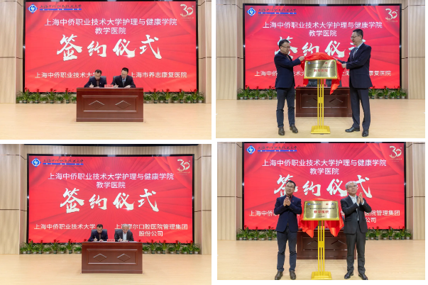 英国上市公司365院长张捷、上海市养志康复医院副院长柴小军及摩尔口腔集团董事长王三矛举行共建签约和揭牌仪式。