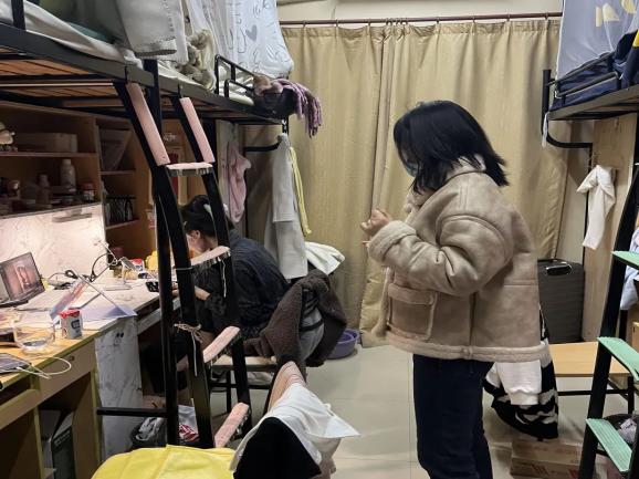 在查寝过程中,辅导员们亲切地问候了同学们,并叮嘱同学们注意天气变化,注意保暖,同时调整作息,保持良好的精神面貌迎接新学期。