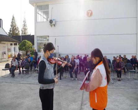 多才多艺的志愿者们为老人们表演了小提琴独奏、唱歌等节目,并通过洗手操的形式教会老人们正确的洗手方式。现场活跃的气氛,让老人们都感受到了重阳节的温馨氛围,脸上都洋溢起了幸福的微笑。