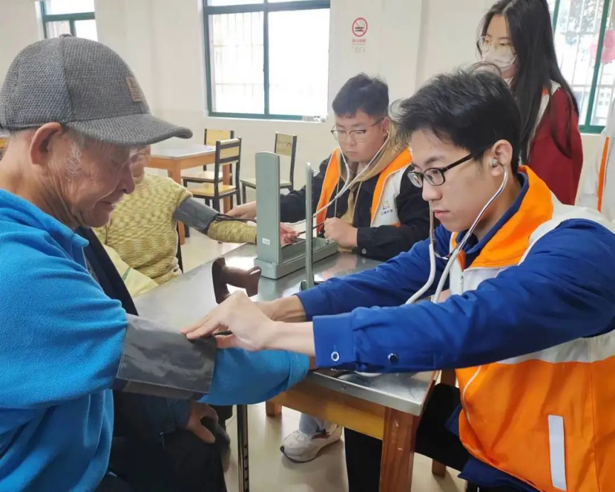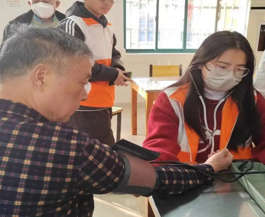 活动开始,志愿者们分批为老人们测量血糖、血压。在测量期间,志愿者们利用自己的专业知识,热心地为老人们答疑解惑,并对其健康症状提出合理的建议,嘱咐老人们要多多关注自身身体状况。