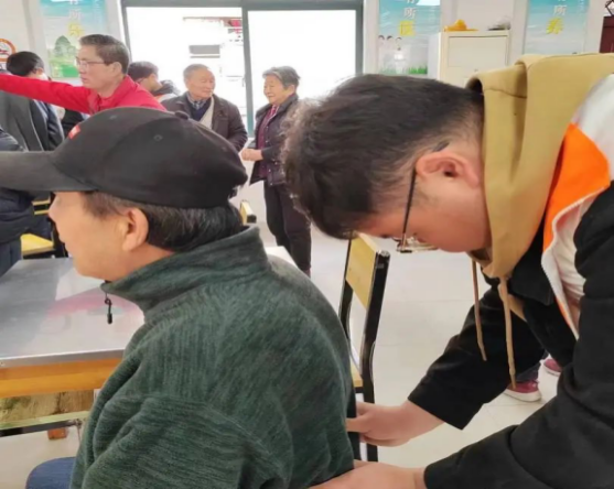 随后,志愿者们运用专业特色给老人们进行推拿按摩,“拿、捏、揉”,在娴熟的手法下,老人们一个个都拍手叫好。此外,在热闹的现场,志愿者们陪着老人们唠着家常,老人们也关切的询问同学们的在校生活,现场一片其乐融融。