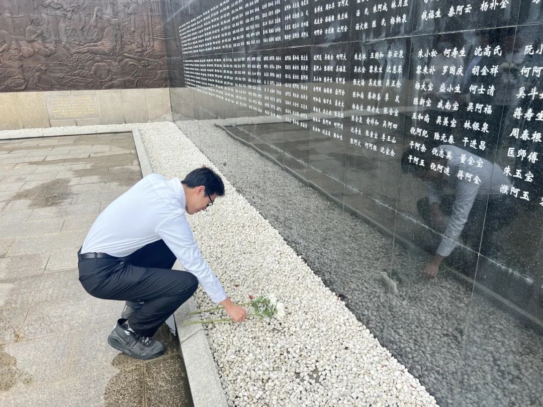 随后,全体成员将黄白菊花敬献至英烈碑前,向革命先辈的伟大精神致敬。