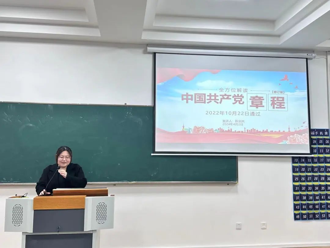 党课伊始,陈剑岚老师向学员们介绍了党章的内容,并强调学员们应该重视党章,真正把党章作为加强党性修养的根本标准,切实把党章各项规定要求落实到行动上、体现在生活中。