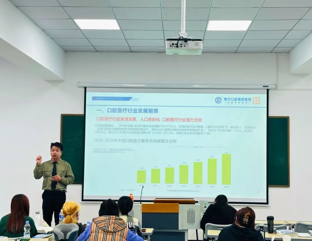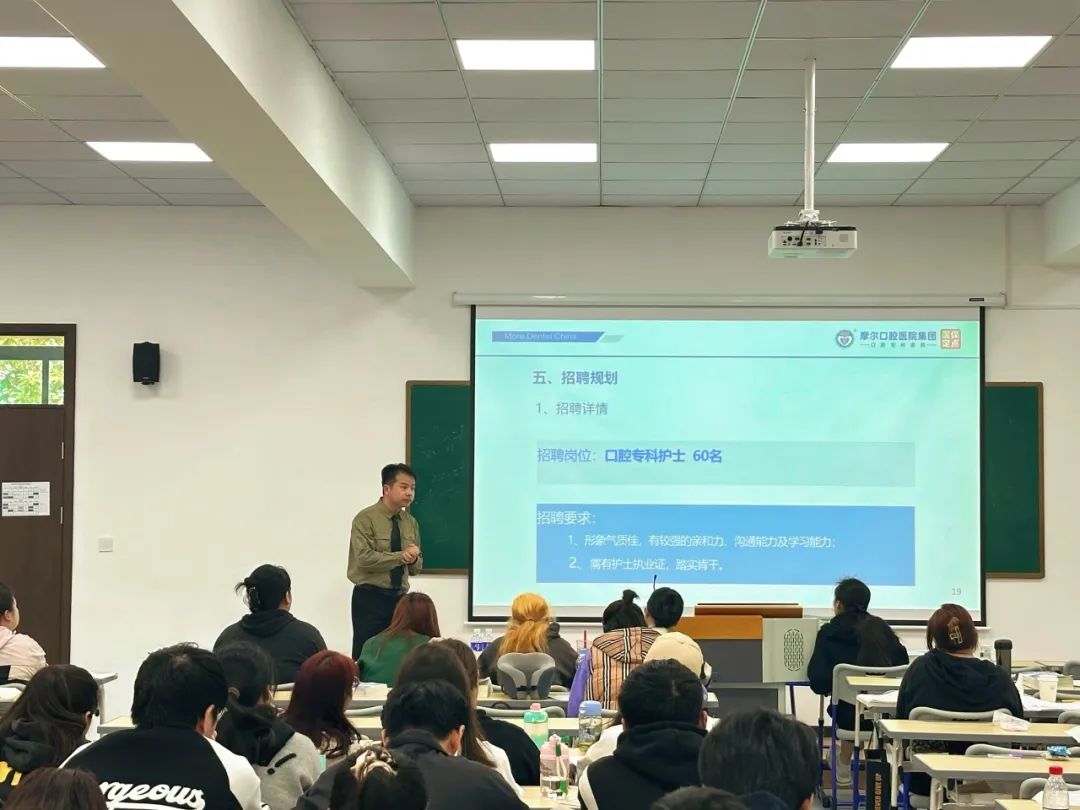 宣讲会伊始,摩尔口腔的招聘人员为同学们详细介绍了集团情况、工作环境、招聘要求与岗位等方面,让同学们对医院基本情况有了更深入的认识。