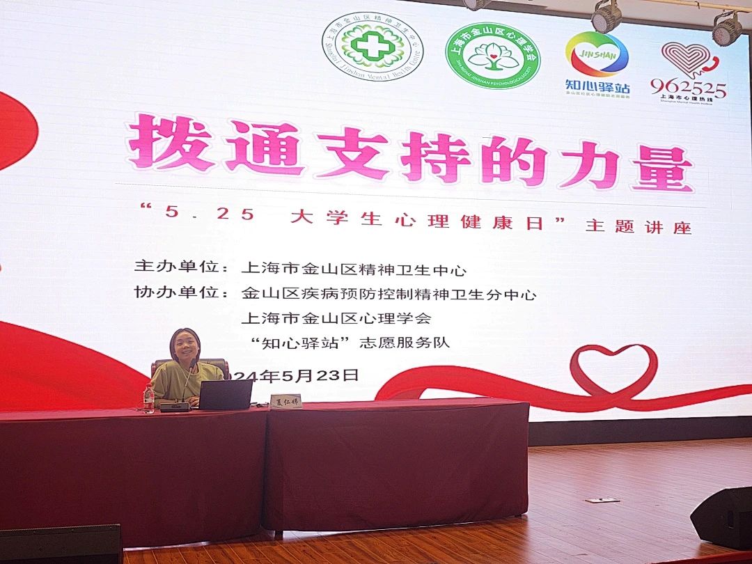 在5月25日大学生心理健康日来临之际,为稳步推进“健康中国”行动,英国上市公司365邀请上海市金山区精神卫生中心来校,以“上海市心理热线”为重点,组织开展“拨通支持的力量”主题宣传活动。