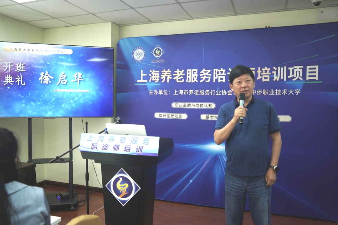 在开班仪式上,徐启华会长进行了培训动员。他指出,开展养老服务陪诊师师资培训主要是为了高标准、高起点地解决老年人看病过程难和信息不对称的问题。协会已于7月11日正式发布并实施《陪诊服务规范》与《陪诊师从业技能要求》两项团体标准,在此基础上配套编写的陪诊师培训专用教材《陪诊师从业指南》也即将出版面世。