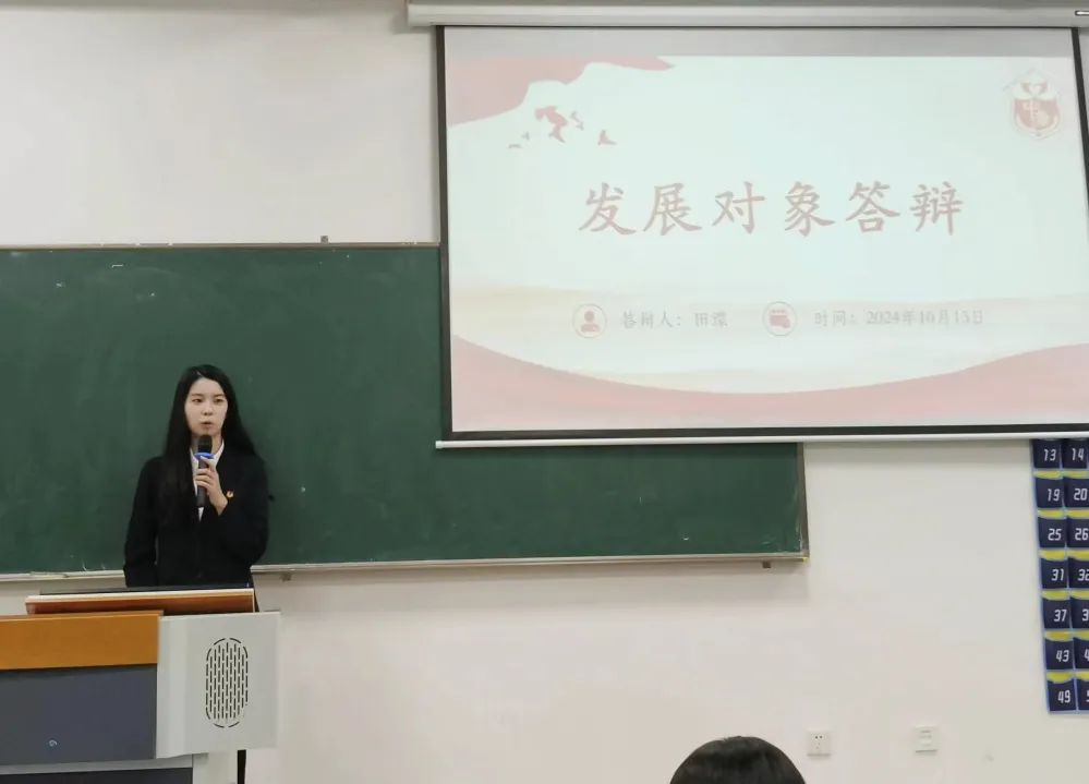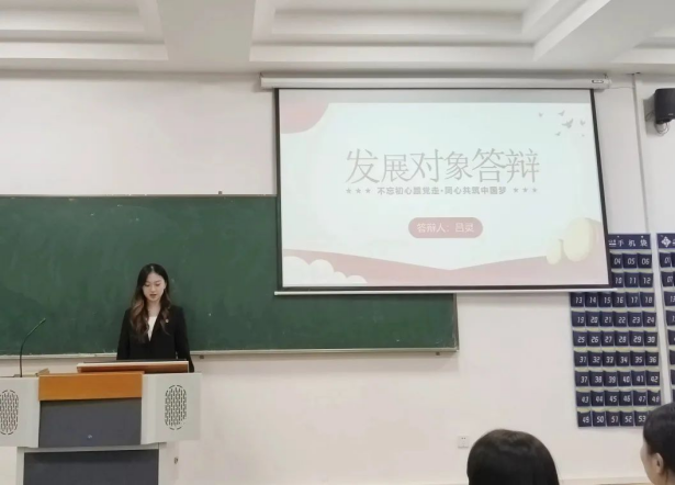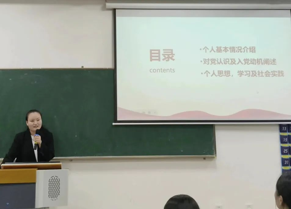 随后,各位入党积极分子按照顺序依次上台进行答辩,围绕自己的入党动机、政治觉悟、综合素质向党组织进行汇报。他们向党组织展示出了自己坚定的入党决心和对党组织与人民的服务信念。
