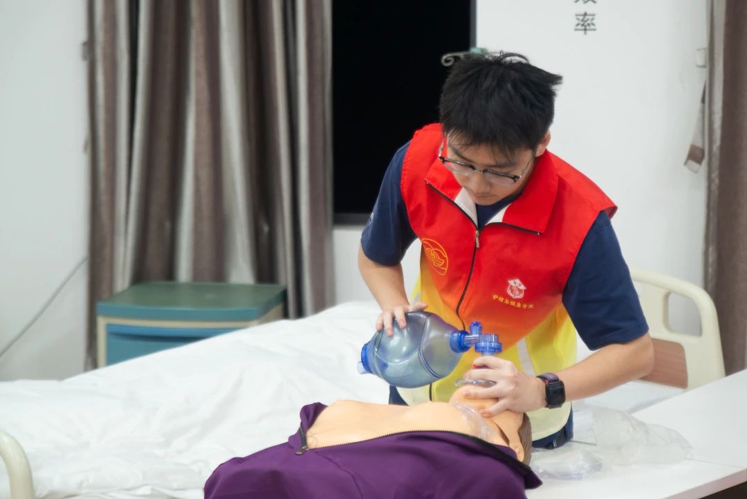 随后,孙乙文同学借助人体模型,为同学们现场演示了心肺复苏的正确姿势与规范动作。从判断意识、就近呼救,到胸外按压、人工通气,每个步骤都清晰明了。他一边演示,一边强调注意事项,确保每一位同学都能准确掌握这项技能。