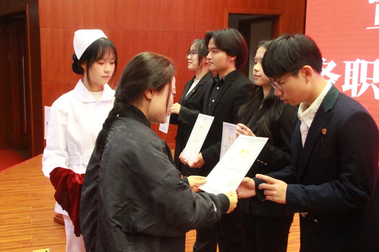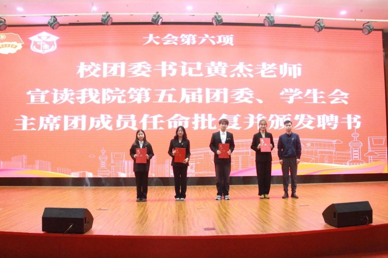 校团委书记黄杰宣读我院第五届团委、学生会主席团成员任命批复并颁发聘书