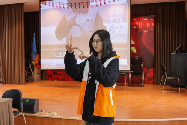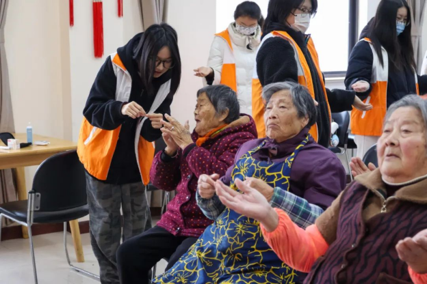 志愿服务活动有条不紊地进行着,志愿者们耐心地教他们进行手指操,老人们在志愿者们的引导下认真学习,逐步舒展了僵硬的手指关节,现场气氛温馨而活跃。