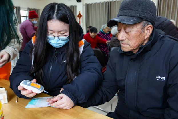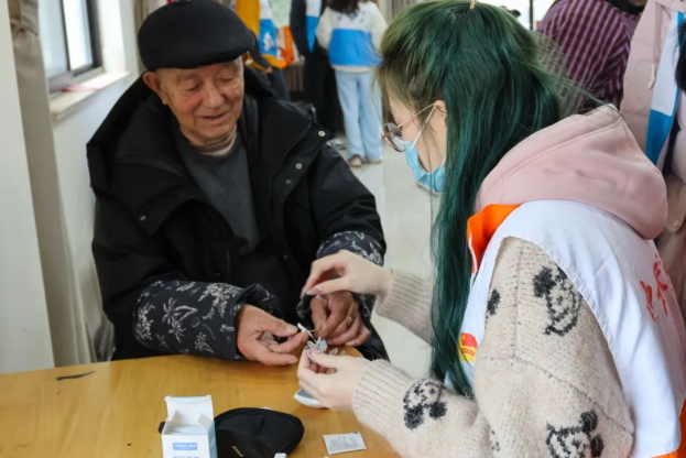 活动伊始,志愿者们有序地分组行动,为老人们逐一进行血糖和血压的测量。在测量过程中,志愿者们运用自己的专业知识,耐心地为老人们解答健康方面的疑惑,并根据测量结果给出实用的健康建议。