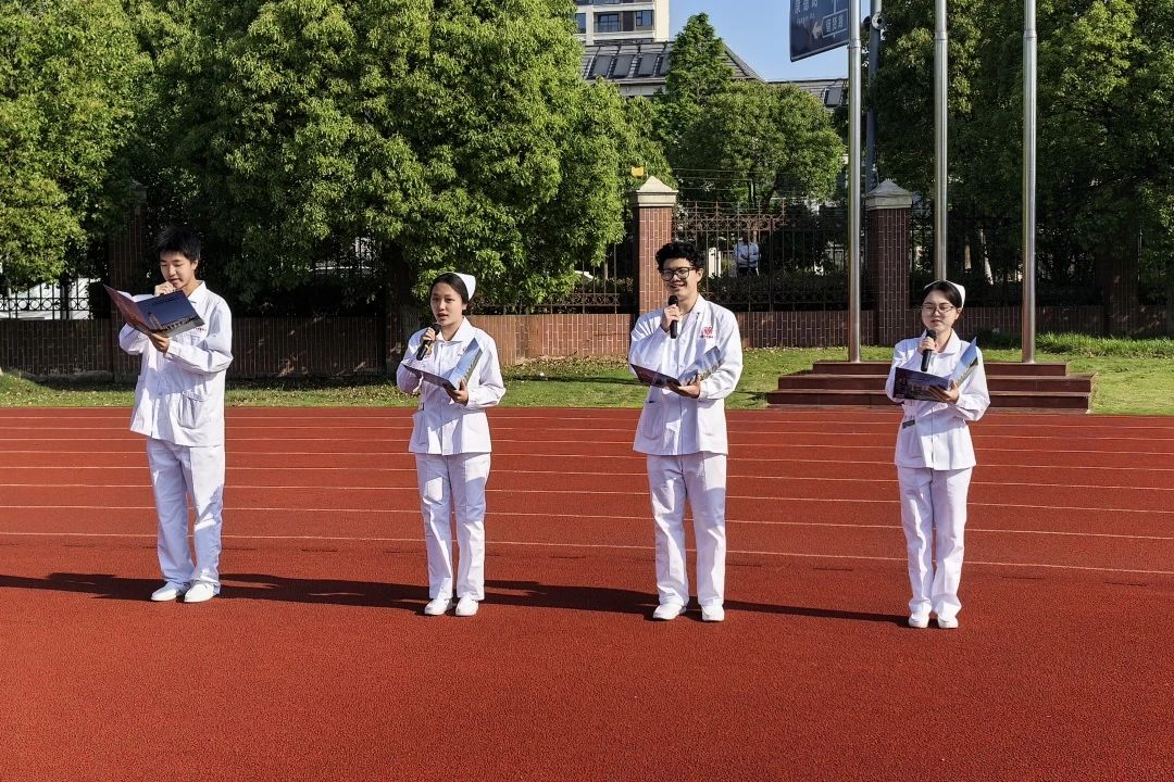 上午7时20分,全体学生身着整洁的护士服,以饱满的精神状态整齐列队入场。7时30分,升旗仪式正式拉开帷幕。我校国旗护卫队身姿挺拔如松,踏着铿锵有力的节奏护送国旗入场。伴随着激昂的《义勇军进行曲》,鲜艳的五星红旗冉冉升起,嘹亮的国歌声中,全体师生肃立行注目礼。