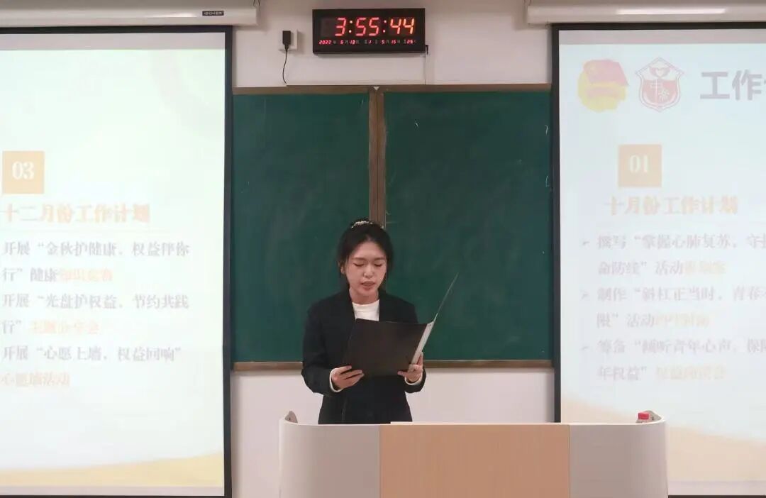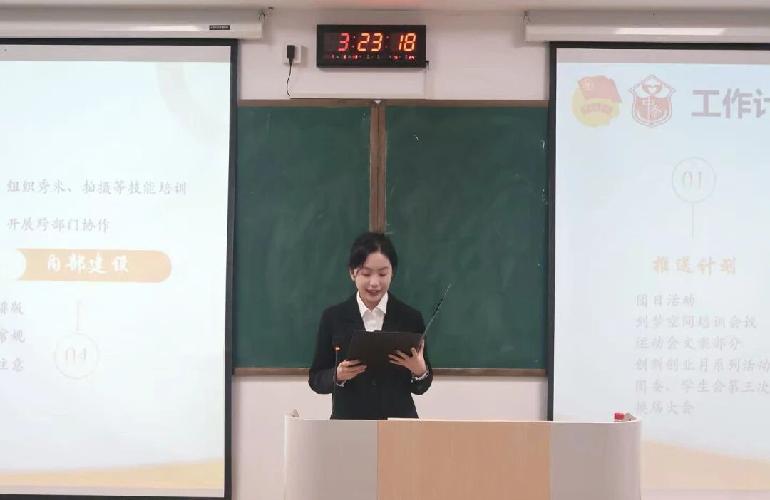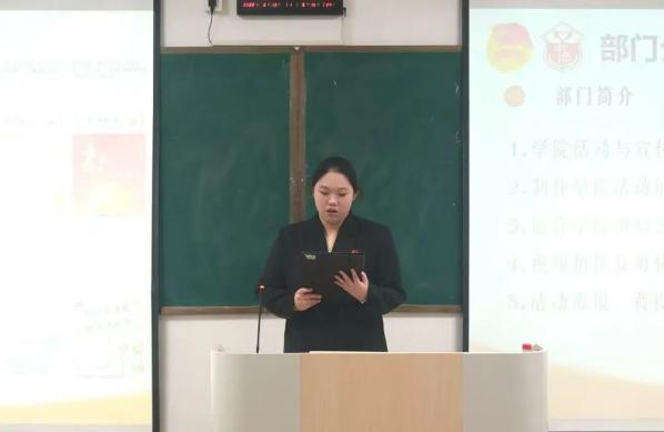 大会第二项议程,各部门部长就工作内容、工作计划等方面进行详细汇报,为后续工作高效、有序展开奠定了坚实基础。同时,各部门部长希望全体干事保持积极进取的工作态度,持续提升自身能力,共同为学院的建设与发展贡献青春力量。