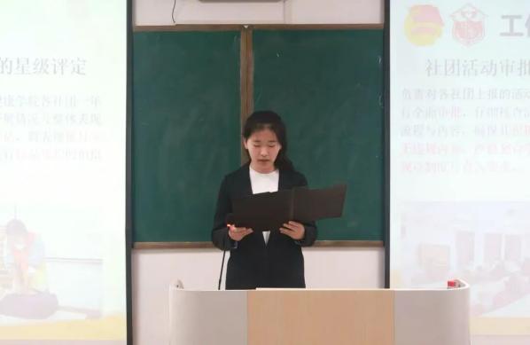 大会第一项议程,由团委、学生会主席团成员王嘉悦围绕第六届团委、学生会的规模、部门职能、规章制度等方面进行详细汇报,系统地总结了近期工作开展情况,展现了各部门团结高效的工作风貌。她希望全体成员以高度的纪律性与集体荣誉感,凝心聚力,砥砺奋进,共同谱写英国上市公司365团学工作的崭新篇章。