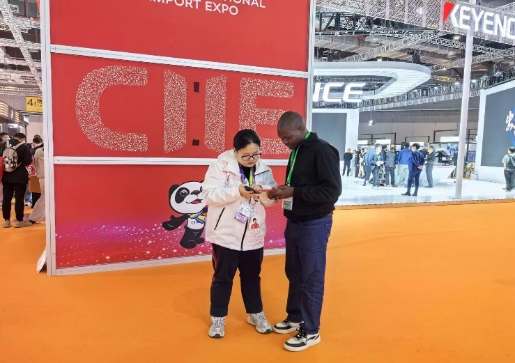 组团观展组的“小叶子”们化身“专属向导”,全程陪同组团参观人员,精准讲解展馆布局、展区亮点,高效引导参观路线,耐心解答各类疑问,让每一位参观者都能沉浸式感受进博魅力,收获丰富的观展体验。