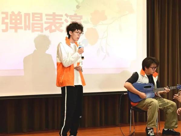 接着,志愿者们带来的文艺表演为现场注入了浓厚的欢乐氛围。深情的诗朗诵《彩色的中国》,轻柔的弹唱表演,以及最后的大合唱《甜蜜蜜》。熟悉的旋律一响起,老人们便纷纷跟着节奏哼唱,现场欢声笑语不断,老人们掌声连连。