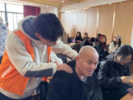 志愿者们围绕 “预防呼吸道感染”开展专题健康宣讲。他们以通俗易懂的语言讲解呼吸道感染的典型症状、预防方法及日常护理要点,耐心解答老人们的健康困惑。此外,志愿者们还提供贴心推拿按摩服务,为老人们揉捏肩颈、舒缓肌肉,有效缓解酸痛疲劳。