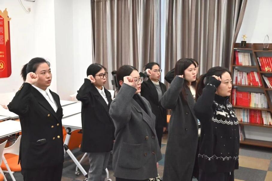 最后,郭帆带领支委会成员及四名新党员向鲜红的党旗庄严宣誓,宣誓声慷慨激昂,抒发了他们对党的赤胆忠诚以及为党奉献、践行初心使命的坚定决心。