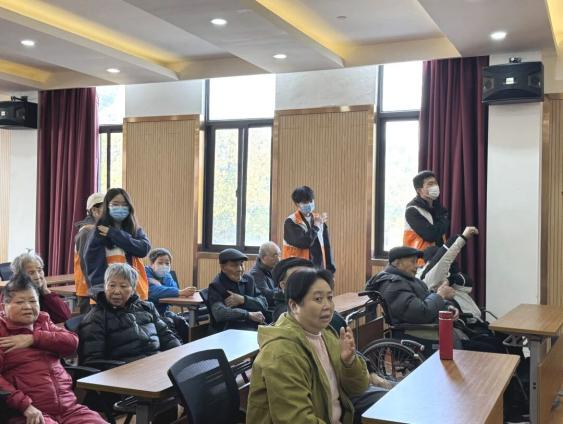 最后,马克思主义学院模拟政协社团的志愿者们精心准备了丰富多样的节目表演。激昂的朗诵《贺新郎·读史》、《七律·人民解放军占领南京》,欢快的舞蹈《桃花朵朵开》,以及温暖的大合唱《明天会更好》,熟悉的旋律里,既有对老人们的美好祝愿,更有党建引领下青年一代对敬老爱老传统美德的传承。