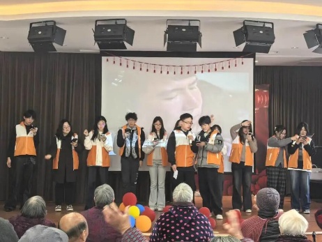 最后,志愿者们为老人们献上精心编排的文艺节目。趣味魔术《丝巾消失》中,彩色丝巾在指尖变幻莫测,引得老人们连连称赞,现场气氛欢快热烈。大合唱《明天会更好》歌声悠扬、真挚动人,唤起了老人们的青春记忆,大家纷纷轻声跟唱,温情满满。