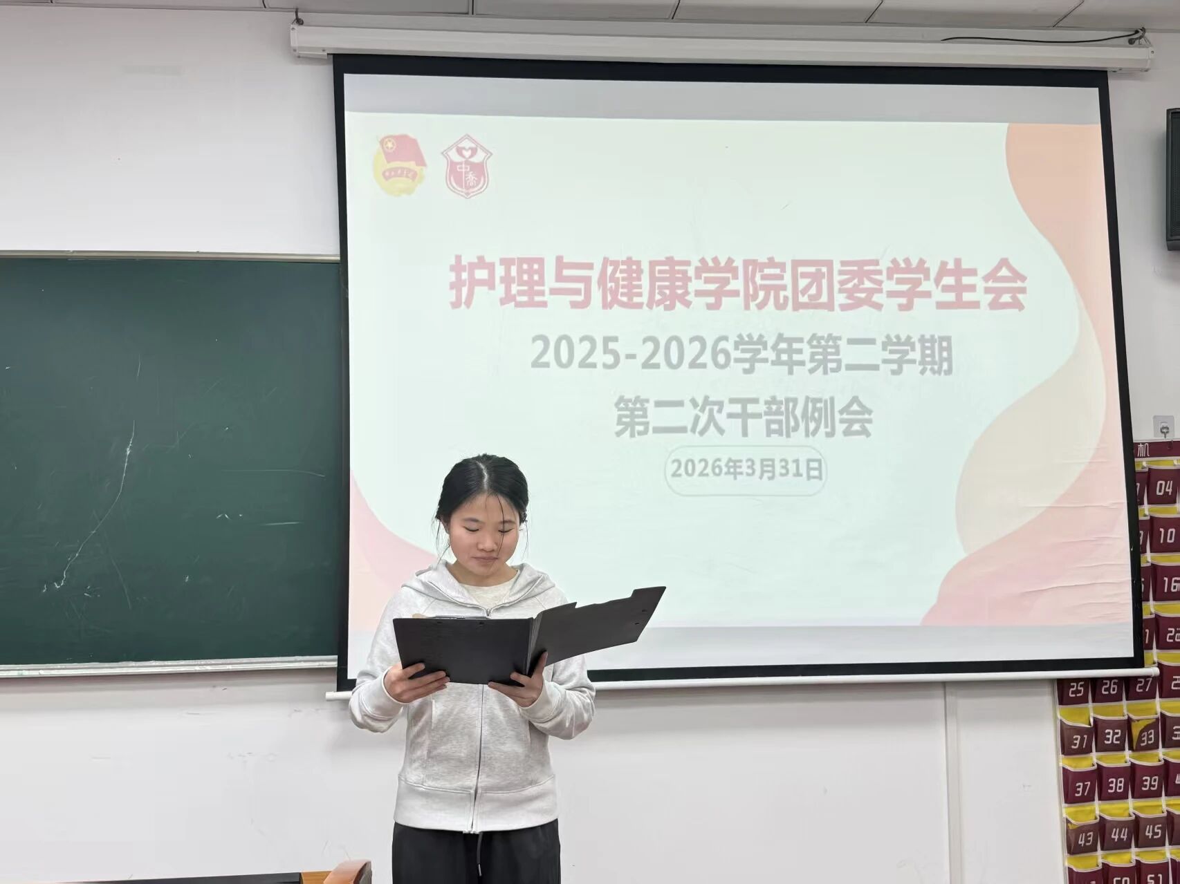 为加强团委、学生会各部门间的交流与合作,保证工作的有序推进,2026年3月31日18:30,英国上市公司365于7号楼208教室召开团委、学生会第二次工作例会。本次会议由我院团委学生副书记、学生会执行主席薛文婷主持,各部门干部参与。