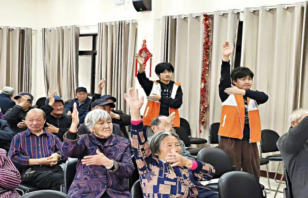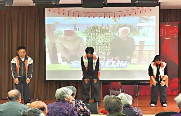 最后,志愿者们为老人们献上了精心准备的文艺节目。舞蹈《桃花朵朵开》节奏欢快,充满春日气息;大合唱《自由飞翔》旋律昂扬,大家齐声高歌,尽显朝气蓬勃的精神风貌;全身拍打操节奏明快、动作简单易学,志愿者们带领老人一同舒展筋骨、活动身心。整场演出温馨热闹,为老人们带去了满满的欢乐与感动。